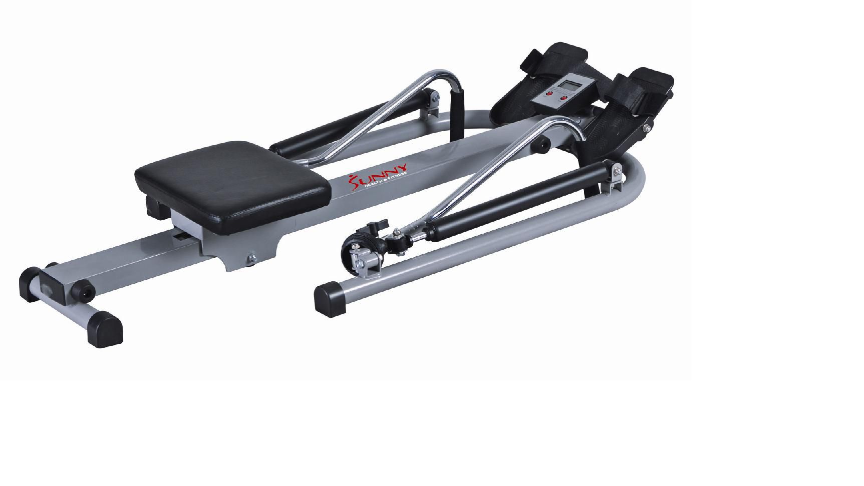 Shop for Aerobic Machines from FitnessEquipmentExpress.com! Full range of motion rowing 2 hydraulic cylinders for maximum resistance Adjustable tension controls Comfortable smooth running seat Pivoting foot plates and adjustable foot straps Electronic monitor display Displays time distance row count total calories burned and more Includes two AA batteries Manufacturer's warranty included - see Product Guarantee for complete details About Sunny Health and FitnessSunny Health and Fitness has been importing and distributing high-quality health and fitness products for over ten years. From their headquarters in Los Angeles California they import equipment from direct sources in Taiwan and China to provide more competitive pricing than the average health and fitness equipment distributor. Because they are committed to excellence and stand behind the quality of every one of their products Sunny Health and Fitness has become one of the fastest-growing companies in the market.