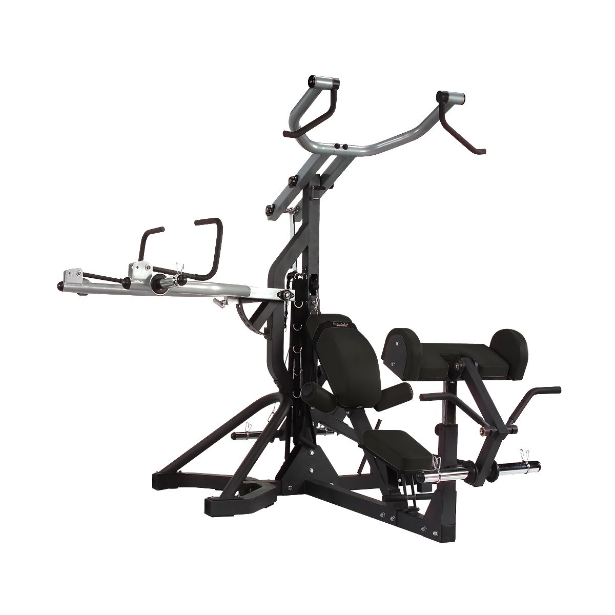 Body-Solid SBL460 Powerlift Freeweight Leverage Gym best price Body Solid Leverage Gym. Turn up the intensity of your workouts and achieve maximum gains in strength and size in a minimum amount of time. The new Body Solid Free Weight Leverage Gym allows you to work out without compromise. Feel free to max out and train to muscular exhaustion for accelerated gains. The Leverage Gyms versatility and advanced safety features ensure a complete heavy duty workout without the need for a spotter. Load up the plates and go to work. Perform bench, incline, decline and shoulder presses, pec flys, lat pull downs, preacher curls, squats, calf raises and much, much more. Over 40 exercises are available on this versatile leverage free weight gym. Each station adjusts to fit your size for proper positioning, beneficial pre-stretch and full range of motion. Every repetition on this rock solid training center feels just right. The Leverage Gym features a 2" and 3" thick DuraFirm seat, back and shoulder pads to support you comfortably through the heaviest routines, DuraFirm upholstery is super tough, sweat and tear resistant and is guaranteed to never bottom out. The extra heavy duty mainframe is built from 10 and 11 gauge high tensile strength steel with all 4 side welded construction. There is no other machine in its class that can compare to its strength and stability. Each leverage exercise station moves fluidly on pivot points utilizing commercial grade pillow block bearings and oversized bronze bushings. Durable, electrostatically applied powder coat finish resists scratches, scrapes and chips. The textured finish hides fingerprints and cleans easily. The Body Solid Free Weight Leverage Gym is built to last a lifetime and is backed by the Body Solid Exclusive In Home lifetime warranty on everything, pads, pulleys, cables, frame. You name it, it is all covered. Forever. Period. Weight plates optional.