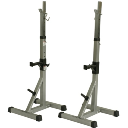 compare prices for Valor Athletics BD-8 Deluxe Squat Stands with Plate Storage Features: -Deluxe squat stands. -Color: Pewter. -Adjustable to fit each person's height. -H frame bases allow a stable stance while in use. -Safety catch bars available for emergency needs. -Rubber end caps protect the floor from scratches. -Plate storage pegs allow two benefits. -One, allowing a place to store your weights and the other is to give the stands a more solid foundation. -Solid base with each base covering 400 square inches of surface. -Storage peg for plate storage and stability. -Adjustable base for larger footprint adding more stability. -Safety spotters on each post can be adjusted accordingly. -For added safety, do not practice squats alone. -Warranty length: 5 years. -Assembly required. Specifications: -36" Upright posts. -5" Chrome back plate to catch bar as lifter maneuvers back to stand. -2.5" Mouth opening for bar support. -Range of 36" to 56". -Upper bar adjusts from 42.75" to 70". -Lower bar adjusts from 22" to 30". -Max load should not exceed 250 lbs. -Mini.